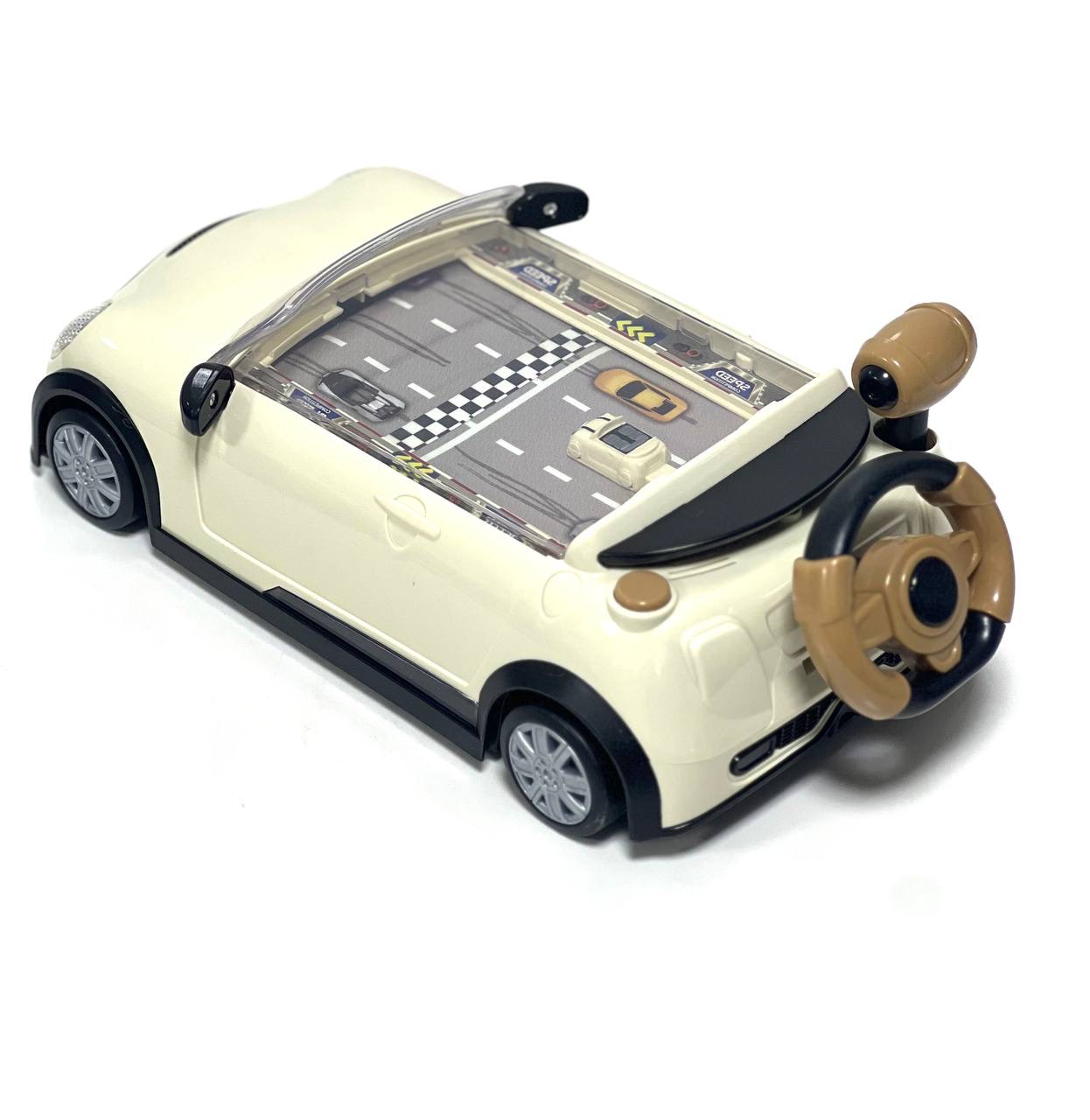این ماشین کنترلی مجهز به سیستم Simulated Driving است؛ به این معنا که فرمان موجود در پکیج نه تنها جهت حرکت را کنترل میکند، بلکه با دکمههای مخصوص، قابلیت پخش موزیک و فعالسازی افکتهای نوری را نیز دارد. بدنه ماشین با رنگ کرم متالیک و جزئیات دقیق مینیکوپر طراحی شده که آن را از مدلهای مشابه متمایز میکند. در فروشگاه ال آی تویز، ما کیفیت ساخت قطعات پلاستیکی و حساسیت فرمان این مدل را برای یک تجربه بازی بدون وقفه و لذتبخش تضمین میکنیم.
